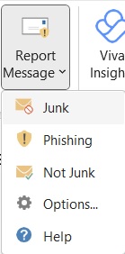 Click the down arrow next to Report Message, then select either Junk or Phishing.
