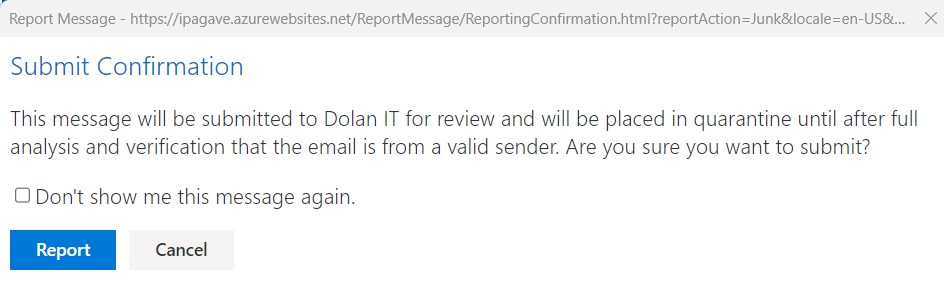 You no longer need to forward suspicious emails to [email protected]. The Report Message button takes care of everything automatically.