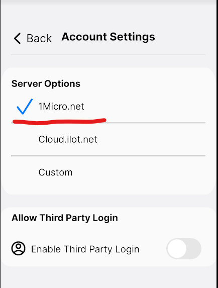 When a new user is created, the default server in the iLot app may be set incorrectly. You’ll need to update this setting before logging in for the first time.