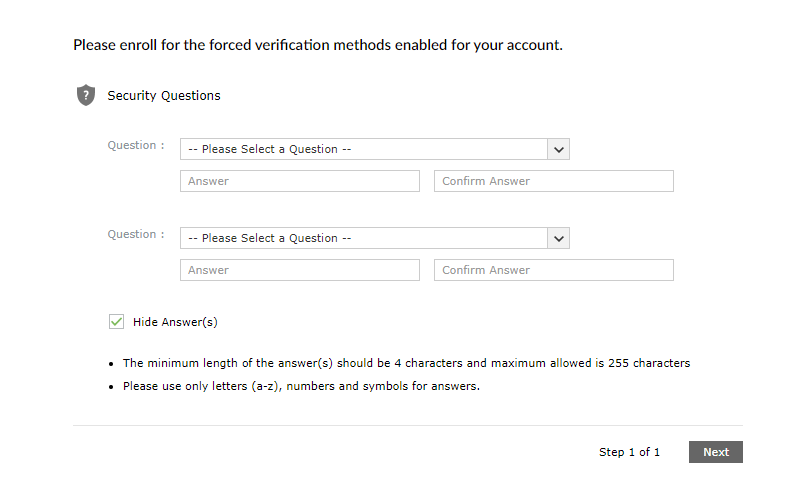 You’ll be redirected to a new page where you’ll need to choose and answer two security questions.