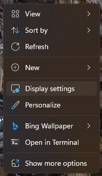 1. Right click on the Desktop and go to Display Settings