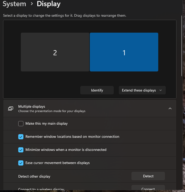 2. Once in the settings menu, you can click either monitor option to edit the settings.